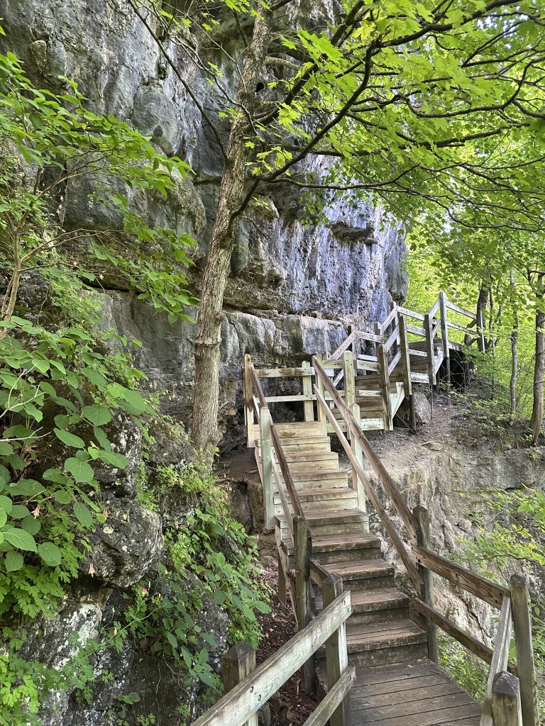 - Devil’s Kitchen Trail (1.40 miles) → Travels through sinkholes and steep bluffs.