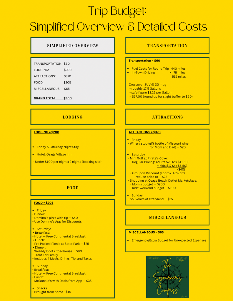 - Activities – Prioritizing free or discounted attractions ensures every outing is worth the cost.